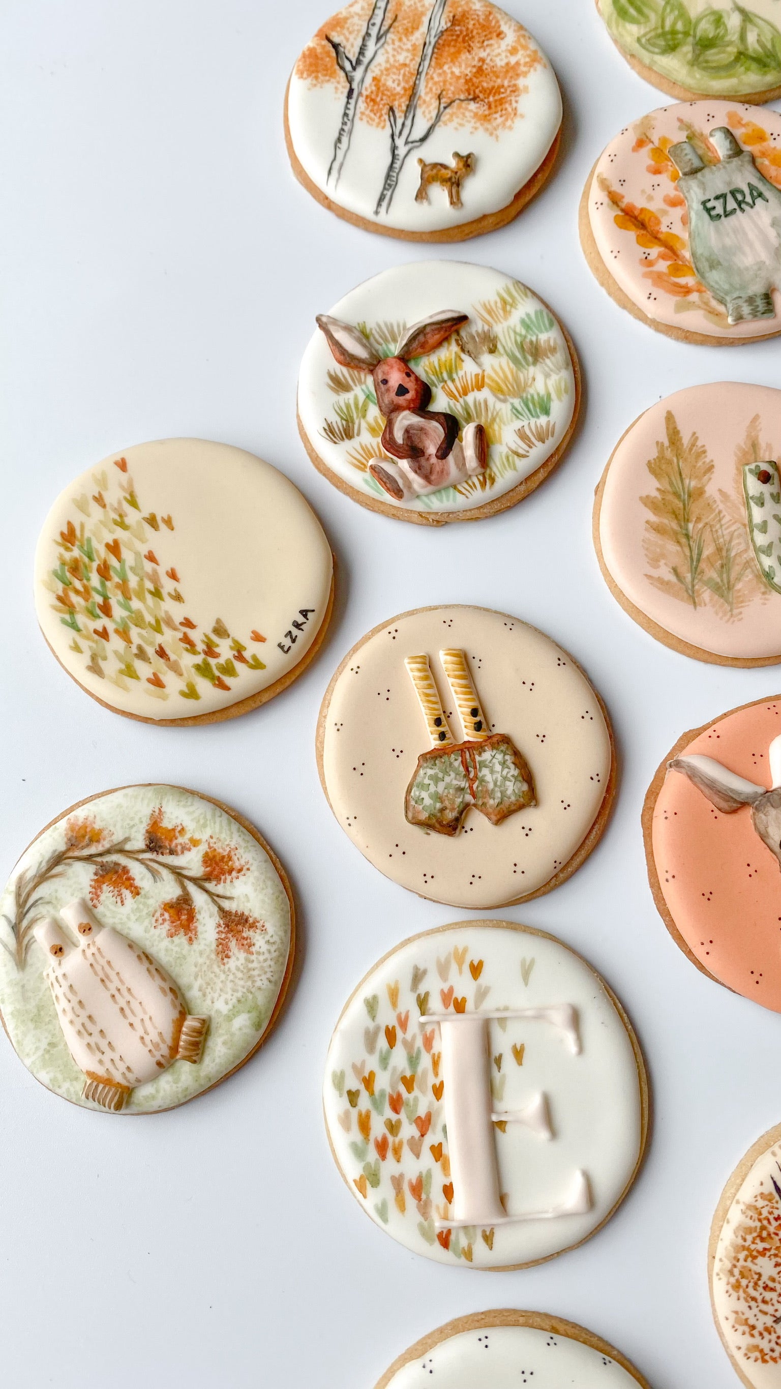 From gentle fawns and sleepy bears to whimsical leaves and mushrooms, every biscuit is a miniature work of art - perfect for baby showers, gifts, or as a sweet addition to your dessert table.